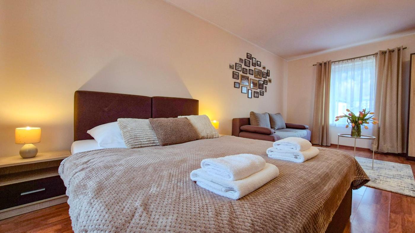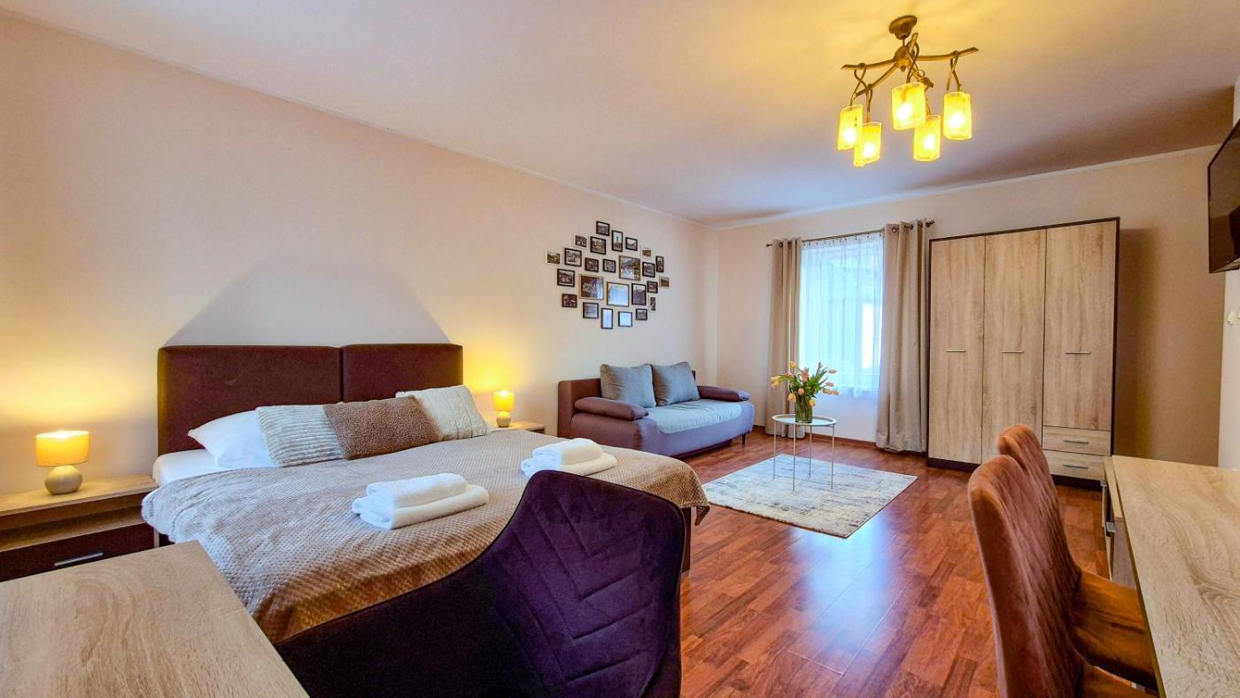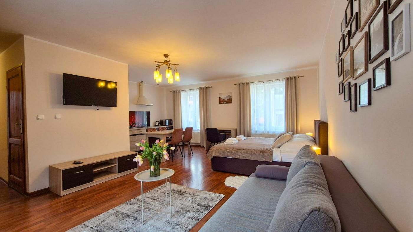 Apartament. This apartment is comprised of 1 bedroom, a kitchenette and 1 bathroom with a shower and a hairdryer. Meals can be prepared in the well-fitted kitchenette, which is fitted with a stovetop, a refrigerator, kitchenware and a microwave. The apartment offers a wardrobe, an electric kettle, heating, a flat-screen TV, as well as city views. The unit offers 2 beds. Apartament - 4 osobowy. Powierzchnia pokoju ok.: 35 mkw.