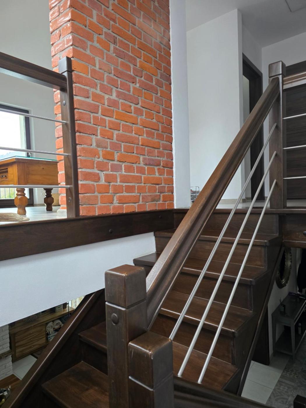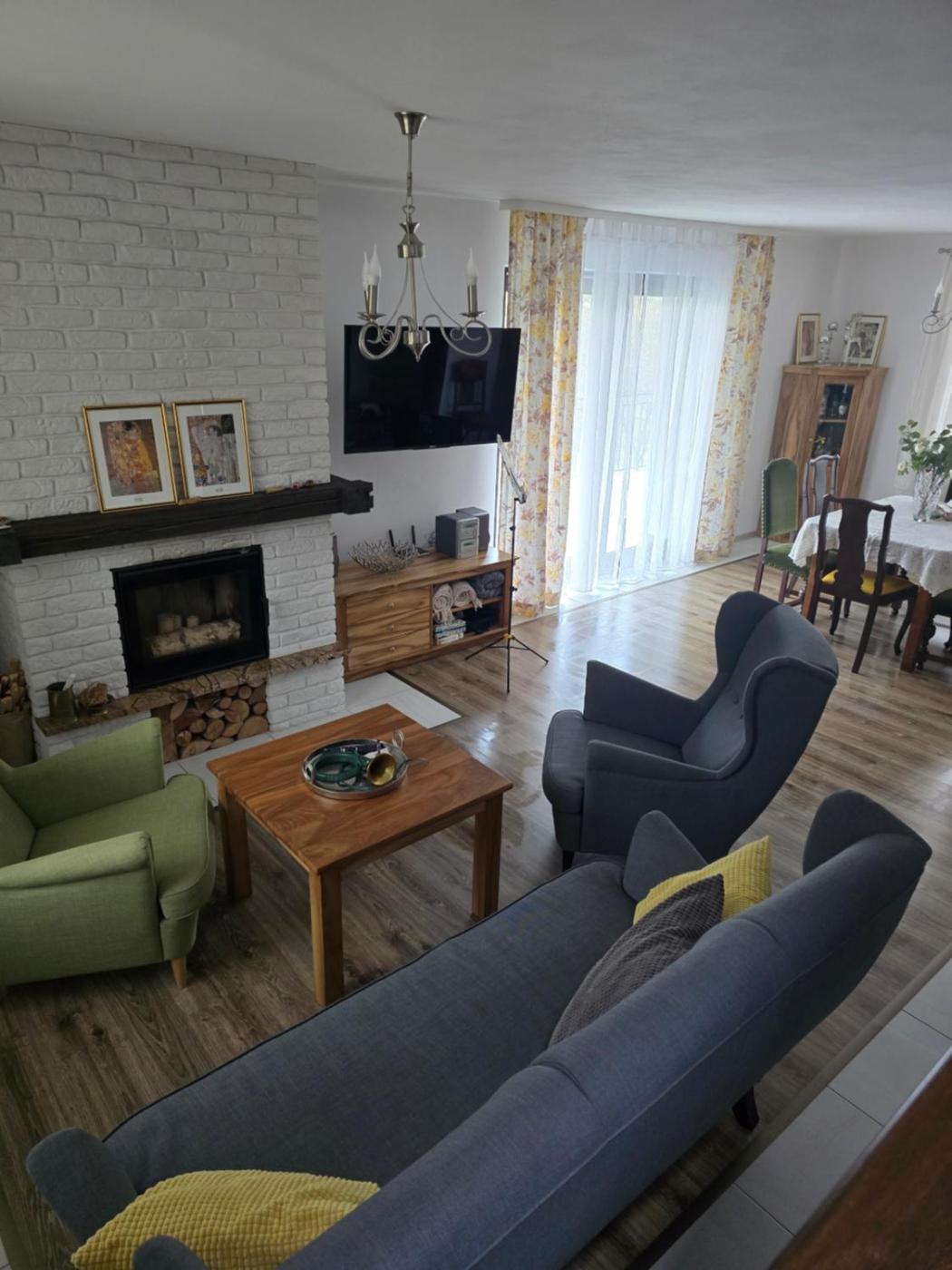 Dom z 4 sypialniami. This holiday home offers a fireplace. This spacious holiday home comprises 1 living room, 4 separate bedrooms and 2 bathrooms with a bath and a shower. The well-fitted kitchen features a stovetop, a refrigerator, a dishwasher and kitchenware. Featuring a terrace with garden views, this holiday home also provides a private entrance and a flat-screen TV with streaming services. The unit offers 4 beds. Dom wakacyjny - 6 osobowy. Powierzchnia pokoju ok.: 150 mkw.