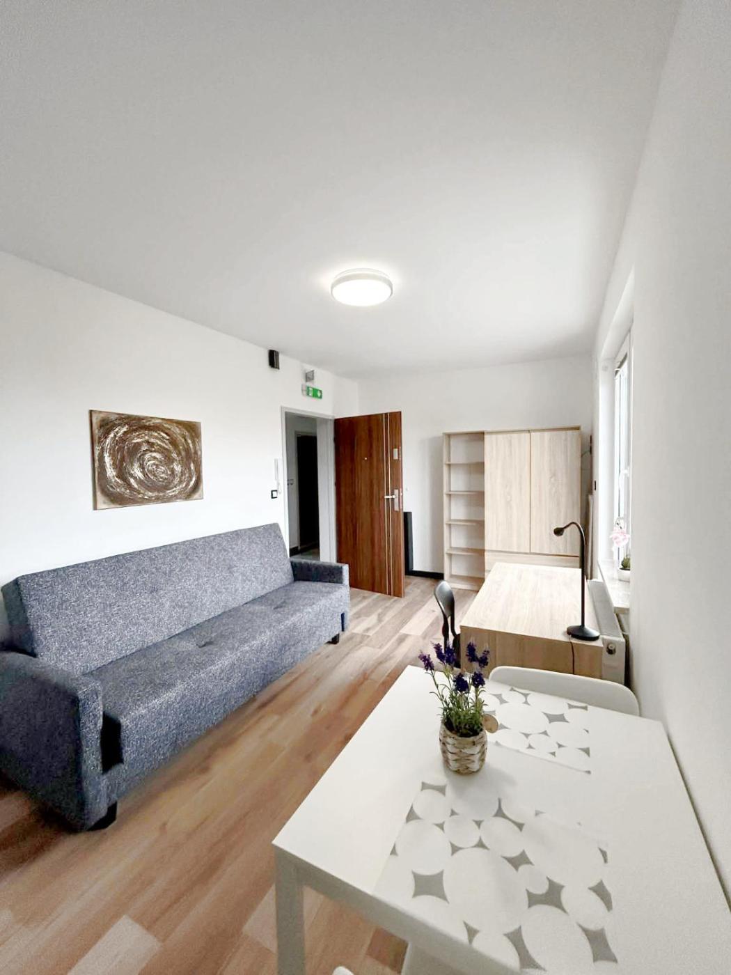 Apartament z 1 sypialnią. This apartment consists of 1 bedroom, a kitchenette and 1 bathroom with a shower and a hairdryer. The apartments kitchenette, which features a stovetop, is available for cooking and storing food. Guests can benefit from a balcony and city views. The unit offers 1 bed. Apartament - 2 osobowy. Powierzchnia pokoju ok.: 20 mkw.