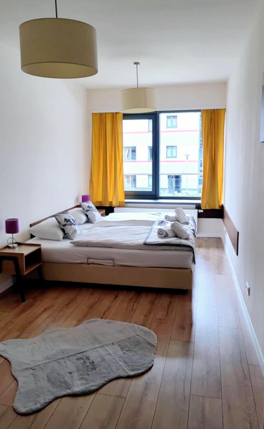 Apartament z 1 sypialnią (2 osoby dorosłe). Ten apartament z oddzielnym wejściem mieści salon, oddzielną sypialnię oraz łazienkę z wanną lub prysznicem i suszarką do włosów. Goście mogą przygotowywać posiłki w aneksie kuchennym wyposażonym w płytę kuchenną, lodówkę, przybory kuchenne i kuchenkę mikrofalową. Udogodnienia w apartamencie obejmują dźwiękoszczelne ściany, zestaw do parzenia kawy i herbaty oraz telewizor z płaskim ekranem. Dla Gości przygotowano czekoladę. Do dyspozycji Gości jest 1 łóżko. Apartament - 2 osobowy. Powierzchnia pokoju ok.: 45 mkw. ;